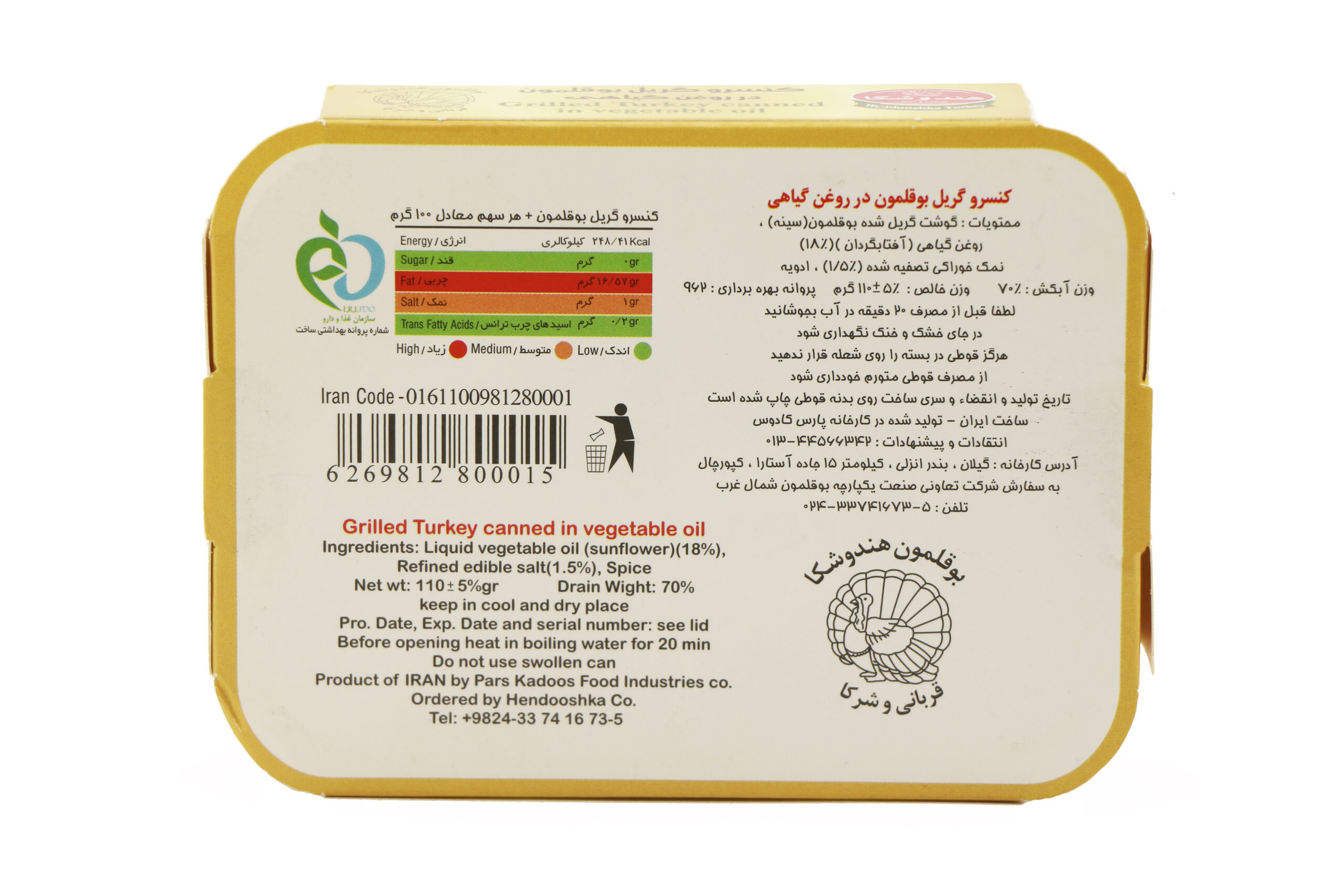 کنسرو بوقلمون گریل 110 گرم هندوشکا